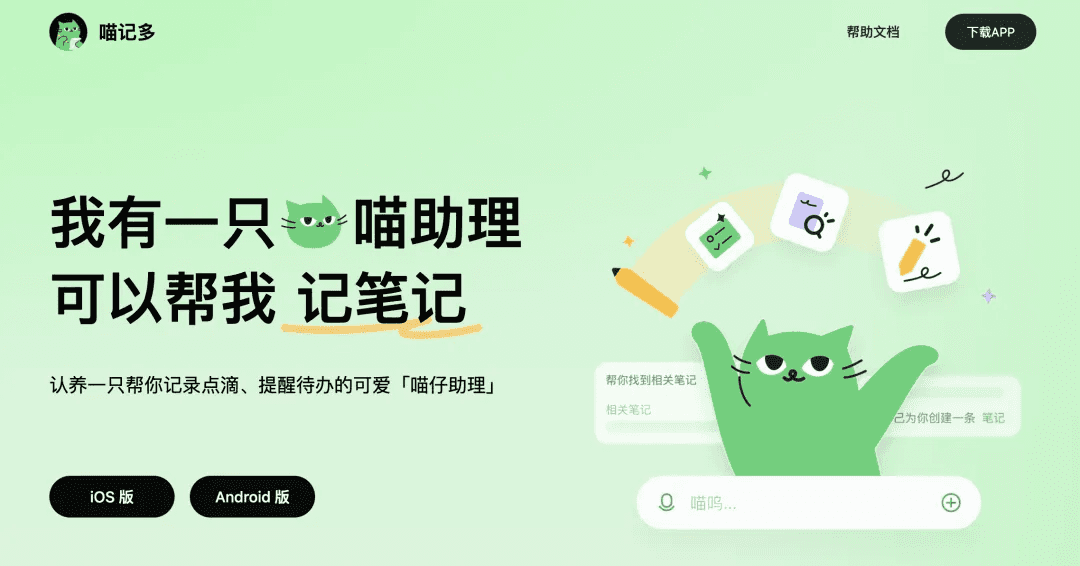 快手悄悄上线了 AI 笔记应用「喵记多」,由轻雀科技团队开发。产品主打拟人化 AI 助手“喵仔”,支持文字、图片、文件等多格式笔记,智能分类、标签和待办提醒。相比同类产品,喵记多更注重陪伴感和情感连接,突出轻巧和智能陪伴体验。