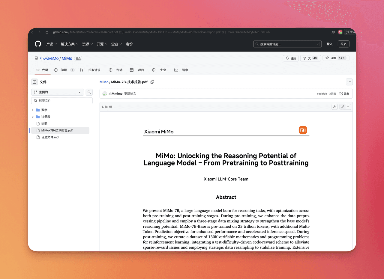 小米首个推理大模型 Xiaomi MIMo 开源!