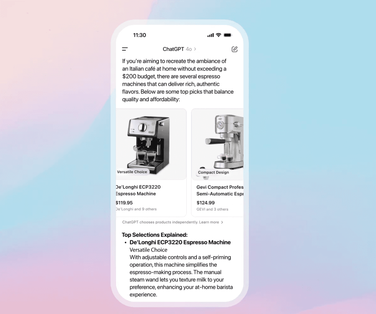 ChatGPT 中购物变得更简单、更快捷,方便查找、比较和购买产品。