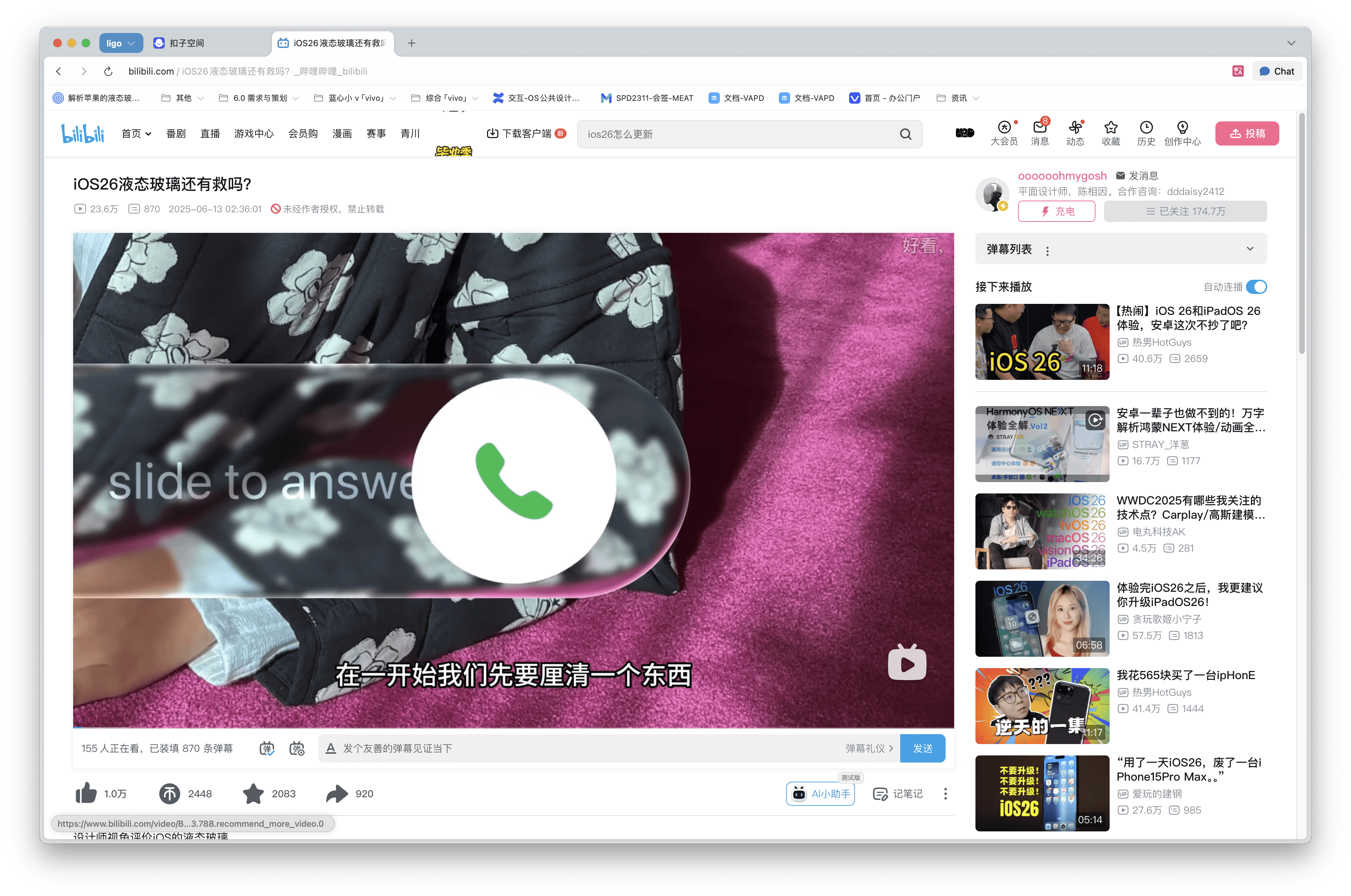 视频以设计师视角评价 iOS 26 的液态玻璃界面,认为其视觉效果新颖,动态光影和半透明材质提升了系统的美观度和未来感,但实际体验中存在明显问题。尤其是在控制中心等界面,透明度设置不合理,导致按钮与背景难以区分,影响了操作的直观性和文字可读性。设指出,液态玻璃作为主题风格有突破,但在功能性和易用性上仍需优化,建议苹果后续调整透明度和材质应用,兼顾视觉创新与用户体验,避免“好看但不好用”的尴尬局面。