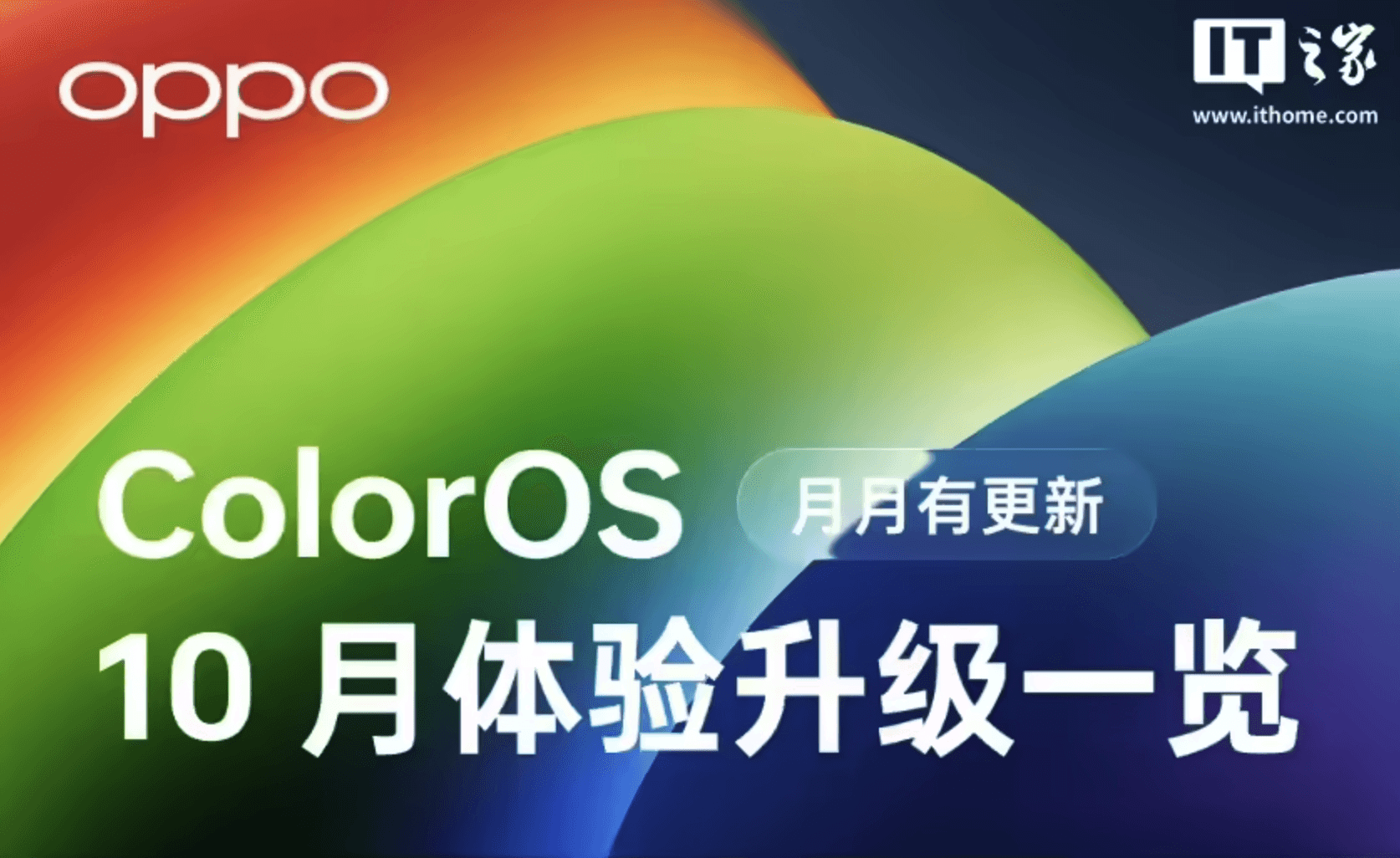 OPPO 推出十月 ColorOS 体验升级:小布/流体云接入多服务,相册与浏览器 AI 强化,PDF 转换更便捷,新增节假日/天气提醒与车载融合优化,10月31日前推送覆盖百款机型。