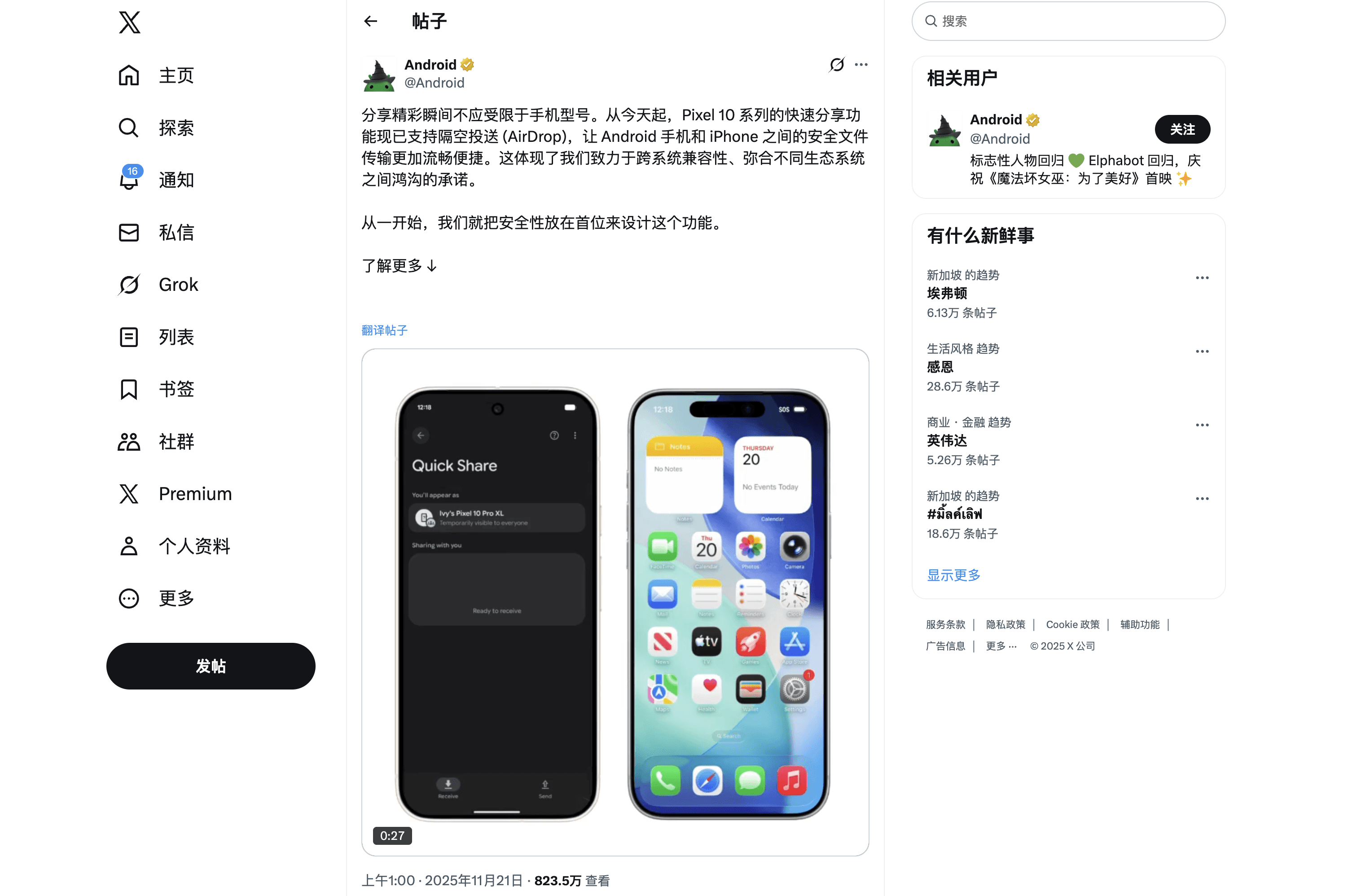 Google Quick Share 功能和 Apple 隔空投送实现了跨平台互通