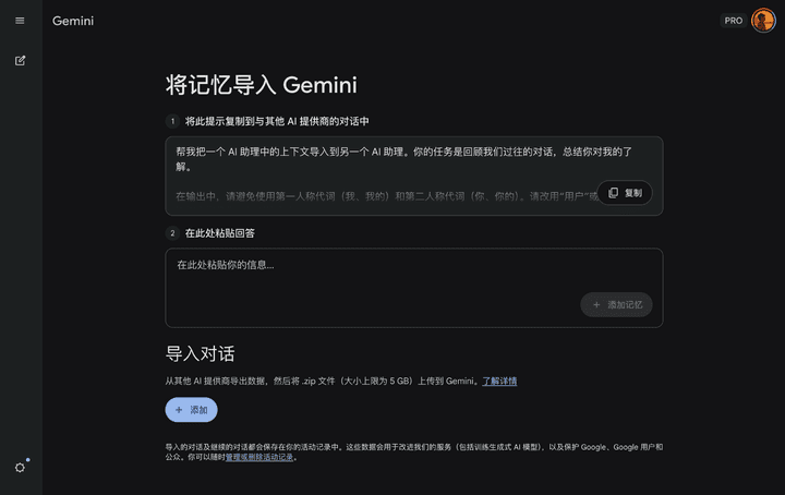 Gemini 推出记忆导入功能