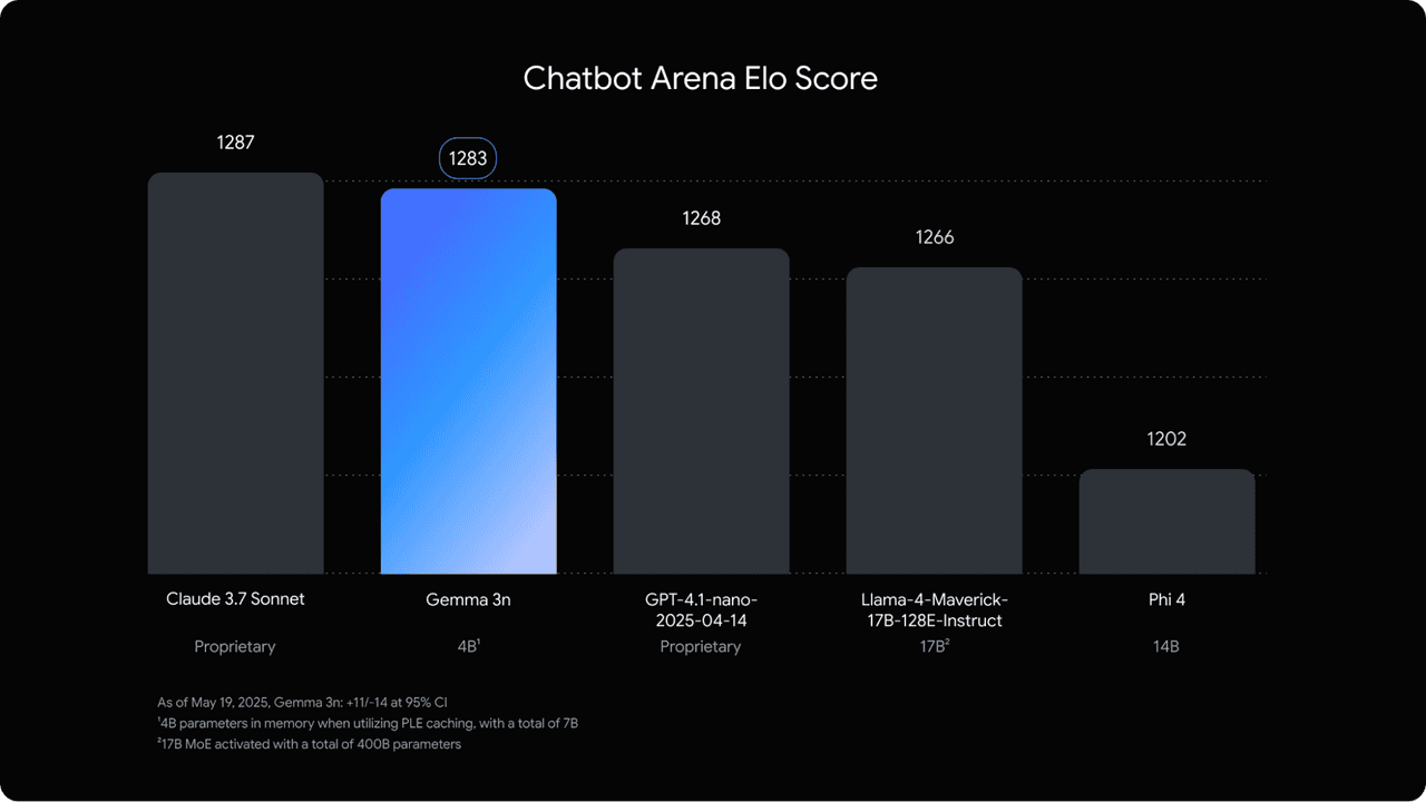 谷歌推出 Gemma 3n,专为移动设备 AI 构建的多模式模型。 它运行时占用的内存更小,将 RAM 使用量减少了近 3 倍,从而可以直接在手机上运行更复杂的应用程序,或从云端进行直播。