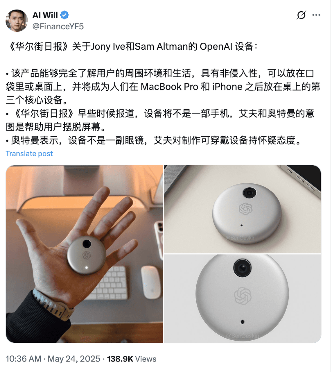 前苹果首席设计师在 OpenAI 预研产品概念流出