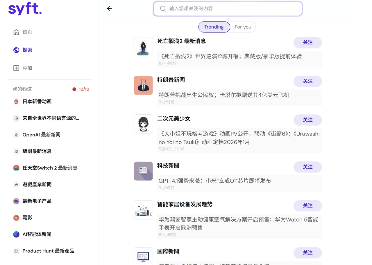 Syft AI-新闻定制聚合工具
