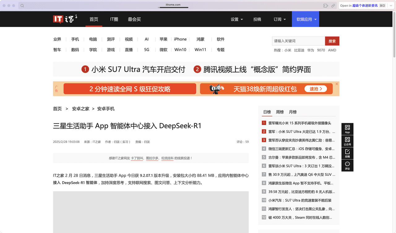 手机接入DeepSeek-R1已经不是什么稀奇的事情了,截止目前已经接入DeepSeek 的 有小米、OPPO、华为、知乎、淘宝、微信等,就连国家电网、深圳政务、广州政务等 都接入了 DeepSeek。上一次这么热闹还是在上次。这次三星生活助手采取智能体的 方式接入 DeepSeek,暂未接入Galaxy AI,也就是国内还是没法用三星最新的 AI功能 。